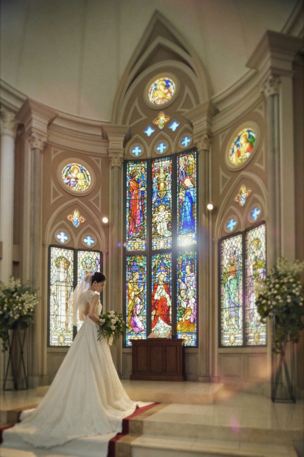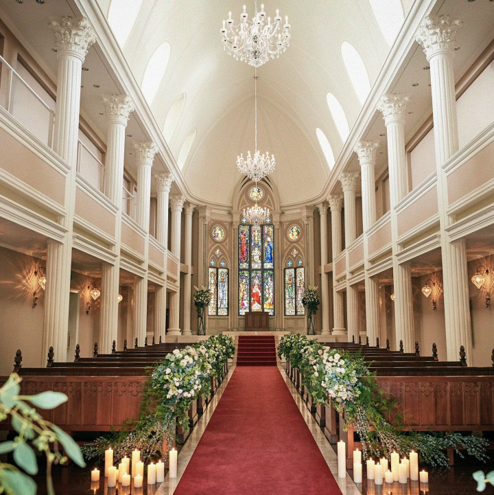 壮大で風格漂う空間での神聖な誓いは、まるで映画のワンシーンのよう…。とゴージャスな雰囲気を愛する花嫁さまに大好評°˖✧˖°
