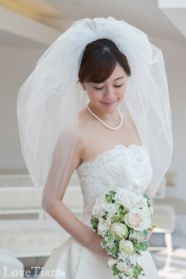 ベールを折り返す事なく被るタイプのベールになりますのでレースの装飾がお顔まわりにくる事でお顔が引き立たせてくれます**