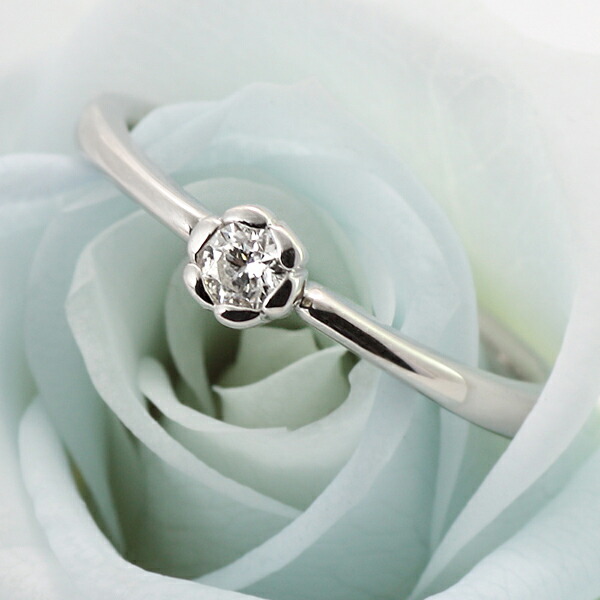 Pt900の婚約指輪*0.1ctのダイヤモンドが施されていて、石座がお花の形をしていて可愛らしいですね♡