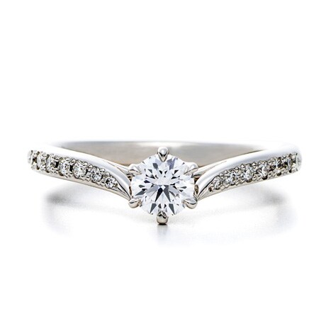 Plumageは「羽」を意味し、Cherishは「大切にする」という意味を持つ婚約指輪*シンプルながらもVラインの流れが楽しめ、華やかに指を彩るデザインになっています♡