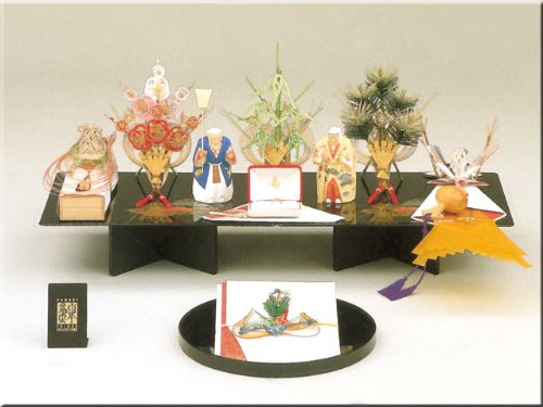 縁起の良いとされる鶴、亀、松竹梅、宝船が付いているセットになります*