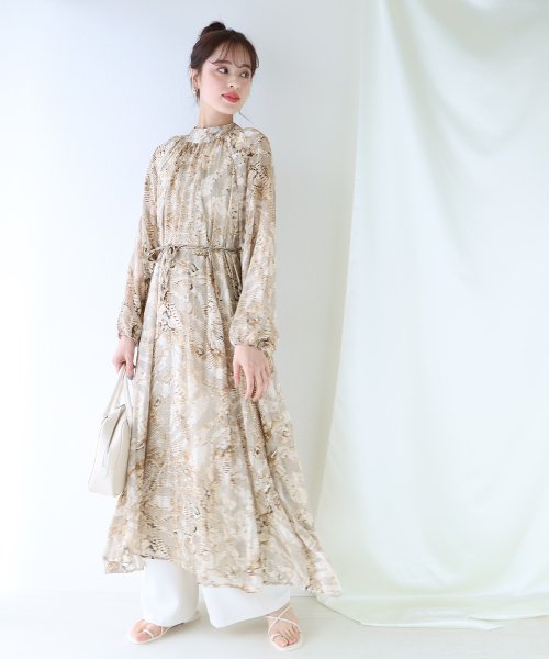 ロング丈なので上品で大人な雰囲気に仕上がるドレス。ウエストのタックが腰回りをすっきりとしたラインに仕上げてくれる*