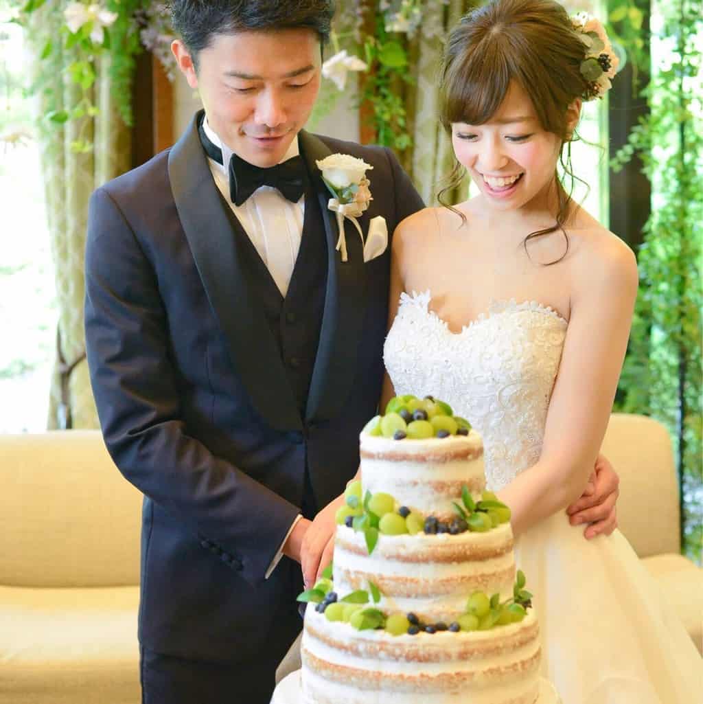 テーマカラーでまとめたウェディングケーキも、ナチュラルシンプルでとってもお洒落♩
